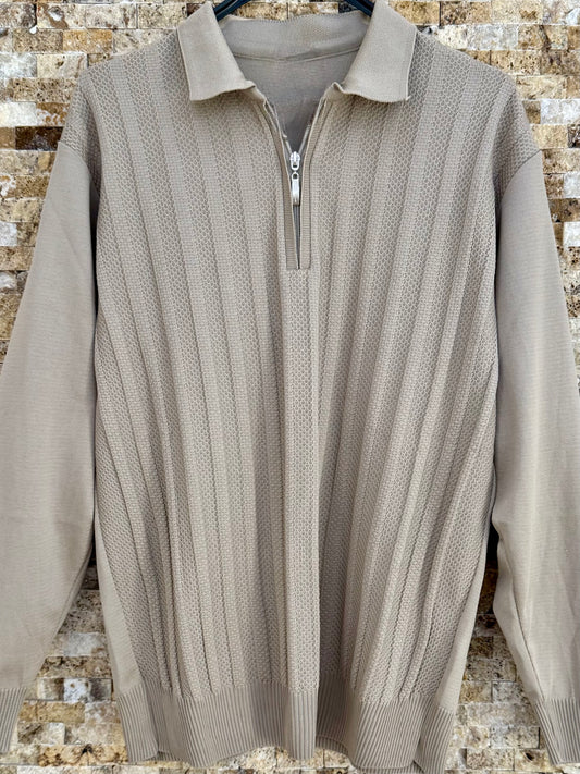 Erkek Polo Yaka Uzun Kollu Çizgili Kazak - Bej