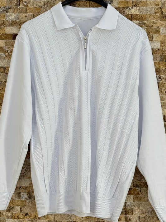 Erkek Polo Yaka Uzun Kollu Kazak - Beyaz