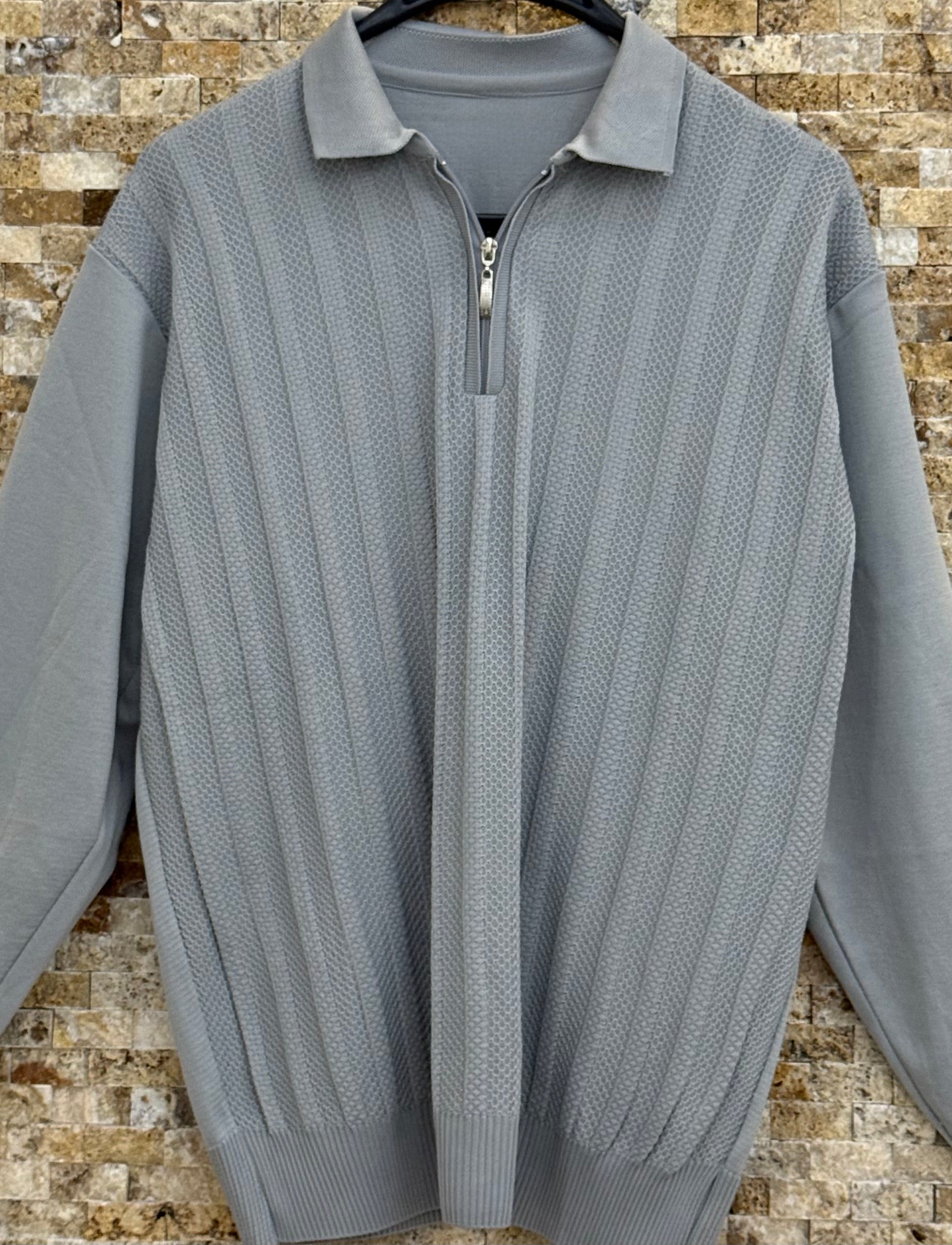 Erkek Polo Yaka Uzun Kollu Çizgili Kazak - Gri