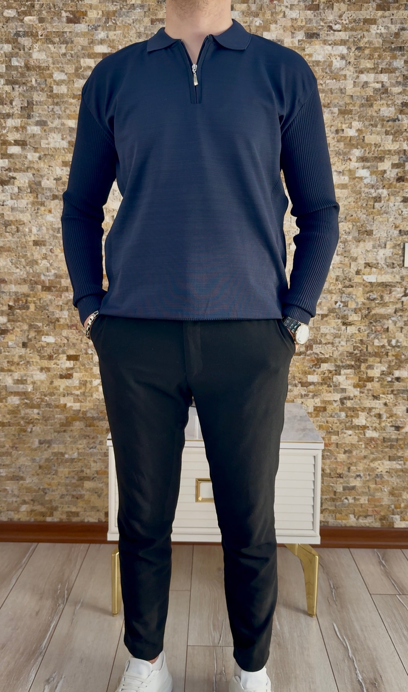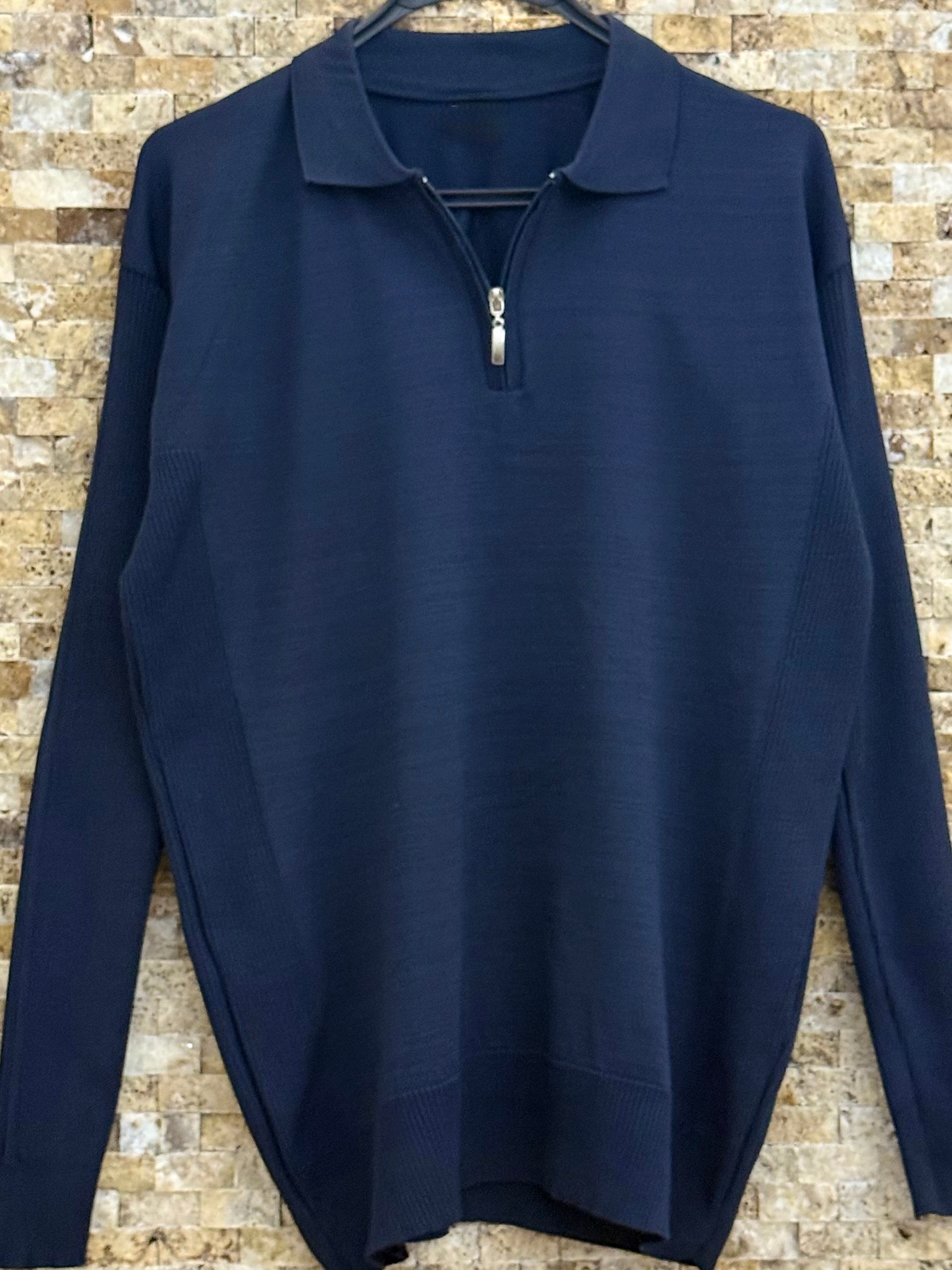 Erkek Polo Yaka Uzun Kollu Kazak - Lacivert